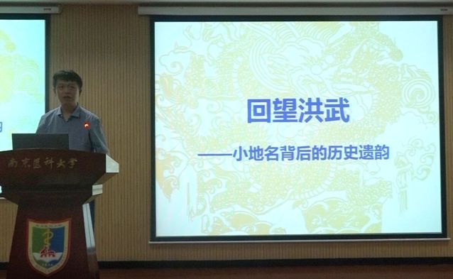 首先,王副馆长以古人的恋地情节作为出发点,从诗歌、绘画、造园等三个角度细致地诠释了人与环境之间的关系。随后,为加强同学们对地域性质和民族风貌的认识,王副馆长着重介绍了“金陵”地名的由来以及蒋山与明孝陵的历史。作为明孝陵副馆长,他对明太祖和金陵的地域文化也有着自己独到的见解,他表示,作为六朝古都,十朝都会,南京名胜古迹自古就与君王有着或多或少的关联。从煦园、阅江楼到兰家庄、沐府西门无不见证着明太祖的伟大历史功勋以及对于中华地域文化的贡献。最后,王副馆长将明代地名故事拓展至抗日战争时期的城墙保卫战,将优秀传统文化与爱国主义教育相结合,用绘声绘色地描述以及真切纪实的图片展示,让同学们在感受战马啾啾岁月的同时领悟到中国文化基因中人类的铮铮铁骨,激励同学们以史为鉴、牢记历史,在这些历史事件的背后充分挖掘其中蕴含的民族文化和爱国主义精神,自觉发扬和延续文化基因