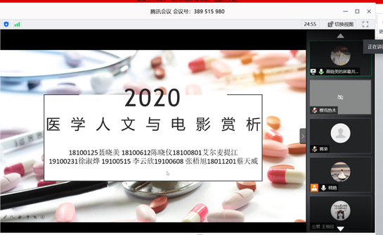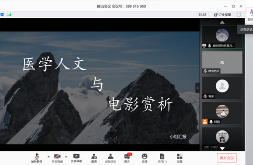 最后,为期两个月的《医学人文与电影赏析》选修课在师生最后一次线上讨论中圆满结束。未来,期望有更多的学生加入这门思想盛宴的选修课程中,共同感受医学人文的魅力。