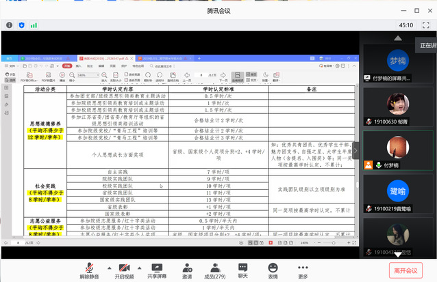 会议伊始,付老师就放假时间、离返校申请流程、下学期报到注册安排、暑期作业等相关事项逐条向学生做了说明。