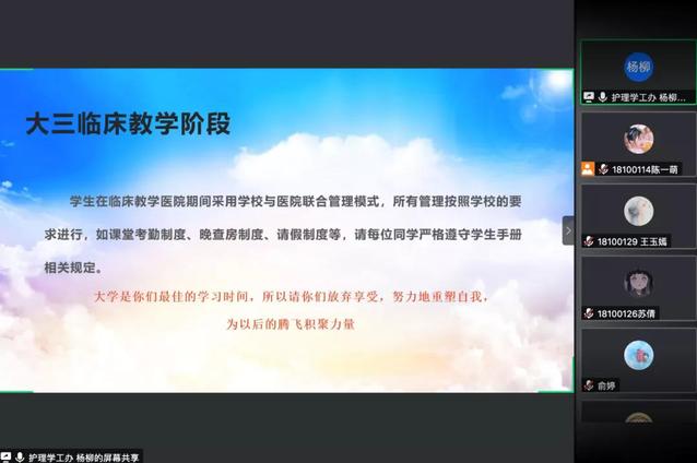 2020年7月3日晚上8点,MK体育(中国)2018级2019-2020学年第二学期期末年级大会于腾讯会议召开,18级全体学生参会,会议由杨柳老师主持。