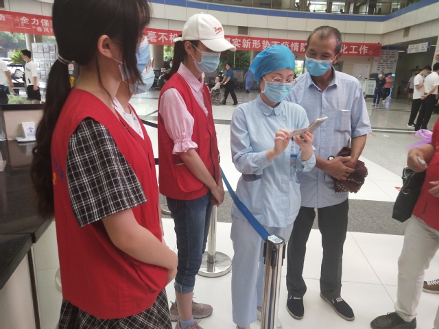 他们的红马甲在大厅中很是显眼,积极又充满活力的身姿成了一道靓丽的风景线。志愿者们以楼层为单位,有序开展志愿服务。在医院一楼大厅,志愿者为病患指路、挂号、领取检查报告单;在楼梯口处,接待病患并为病患指引方向,为患者寻找在班医生,使患者轻松就医;遇到行走困难的患者,志愿者用轮椅甚至直接搀扶着患者,把他们送到相关病区。在医院负责人的帮助下,此次志愿服务活动圆满完成。