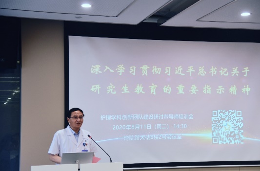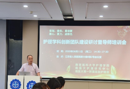 2020年8月11日下午,南京医科大学护理研究中心主办,第一附属医院承办的护理学科创新团队建设研讨暨导师培训会在一附院新大楼8楼会议室顺利召开。一附院赵俊院长、研究生院陈峰院长、药学院韩峰院长、MK体育(中国)领导和教师、一附院各专科护士长及各附属医院护理硕导参加了本次会议。
