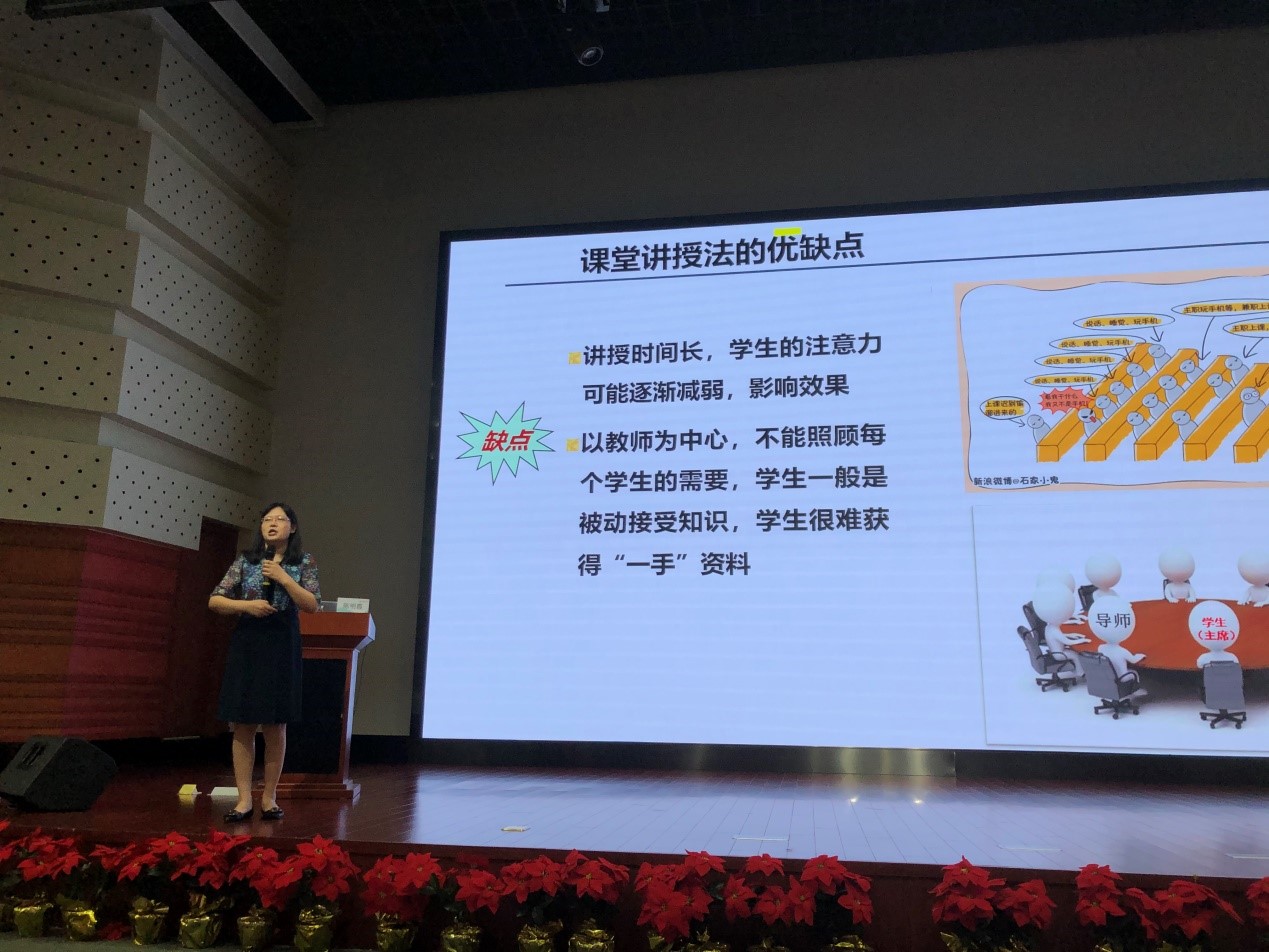 陈明霞主任结合自身多年的教学经验,开展了题为《护理教学设计与实施》的精彩讲座。陈老师以课堂讲授法为例,阐明了分析准备阶段、构思设计阶段和评估优化阶段三个环节的教学设计要点,展示了学院老师们的优秀教学案例,帮老师们理清了课堂教学思路,并感悟教学永远是一门缺憾的艺术,值得老师们毕生追求。