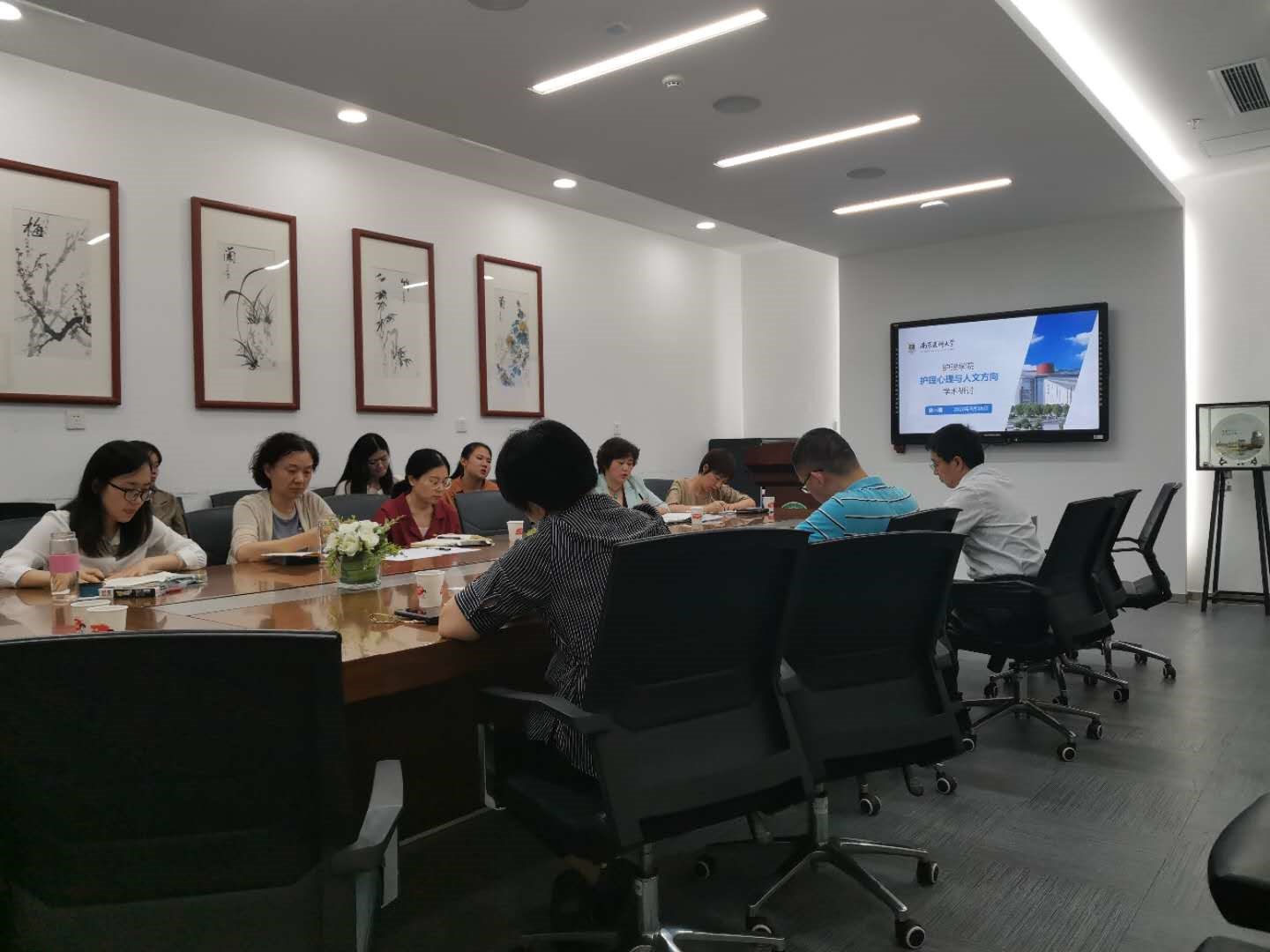 会议的第二项议程是护理心理与人文团队发展方向研讨,各位专家就基金申请、人才培养、团队运作、科研、教学、学术活动的开展及研究方向的凝练展开了热烈的讨论。专家们在研讨会现场进行头脑风暴,交流了目前自己所研究领域的一些成熟的概念理论,同时也对交叉学科的项目及团队未来发展等展开了相关讨论和交流,提出需要进一步加强护理心理与人文团队建设,促进管理学、心理学、护理学、医学多学科融合交叉,学科交融才能产生思想的碰撞和火花,并促进多学科研究的发展和进步。团队学术带头人林征教授指出,目前护理心理与人文研究团队还需要进一步凝练方向,创新科研特色,努力完成学院人才培养计划及项目申请目标,并最终形成完整成熟的团队内部管理及运作机制以开展一系列教学及学术活动。此次研讨会的顺利召开,厘清了团队下一步发展的方向,也为护理心理与人文团队的持续发展奠定了基础。后续团队工作重点将围绕明年省级国家级项目申报展开,各位老师也表示将积极参与。