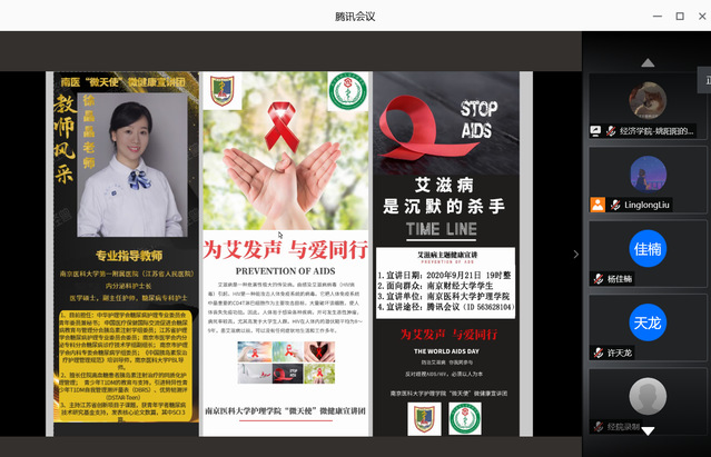 mk体育在线官网“微天使”微健康宣讲团于2020年9月21日晚19时及时出击,向非医科院校学生(南京财经大学)350余人进行健康科普。以科学的角度,为“艾”发声,带领大家正视艾滋,向“零”艾滋迈进。