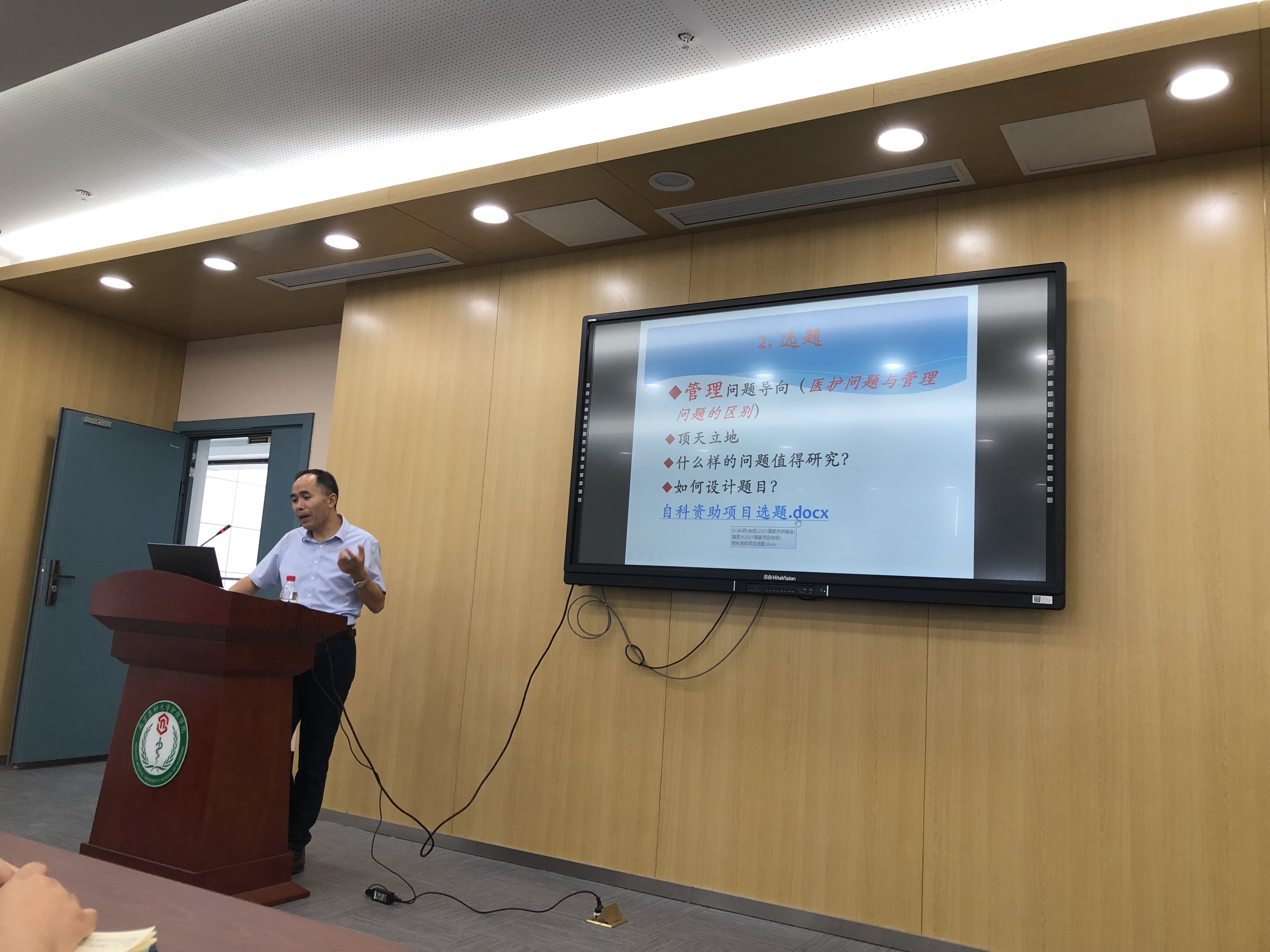 会议上午场,首先许勤院长做了开场介绍和启动动员。接下来郭教授就国自然基金申报新政策进行了详细解读,总结了上一轮申报并对新一轮申报进行动员,在此基础上对护理科研项目选题准备及申请书撰写行了详细介绍与答疑指导,讲解深入浅出,不仅振奋人心,而且求真务实。郭教授还深度解读了护理学科申报管理类项目的专业优势,告诉大家为有源头活水来的坚持和永远在路上的科研精神,指出各位老师要放空一切、专心一致、创造一心,亲力亲为地带着团队,把科学研究高质量有序开展起来。师生们认真听取郭教授的精彩讲授,会议现场学术氛围浓郁。林炜书记进行了动员总结讲话,指出成果重要但过程更重要,大家要继续努力,不仅期待更多更好成果更期待过程的收获与成长。
