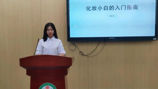 同学们陆陆续续到达现场后,主讲人刘佳乐和同学们展开了讲座前的初步交流,了解了大家对化妆的认识程度以及化妆技巧等。不久,全员到齐,讲座正式开始。