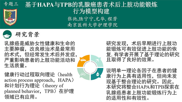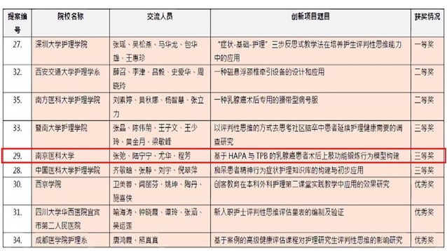 我院遴选了两项创新护理项目的团队代表参加了此次培训。《跨专业教育课程在医学本科教育中的初步实践与效果》项目由mk体育在线官网许勤教授和南京医科大学第一附属医院急诊科吴昊副主任共同指导,2018级研究生陆金玲、朱涵菲合作参与。《基于HAPA与TPB的乳腺癌患者术后上肢功能锻炼行为模型构建》项目由南京医科大学尤华副教授和南京医科大学附属肿瘤医院乳腺外科程芳副主任护师共同指导,2019级研究生张弛、陆宁宁合作参与。在参会师生专题研讨环节,分别在“护理多学科合作”、“护理评判性思维培养”分论坛进行口头汇报。