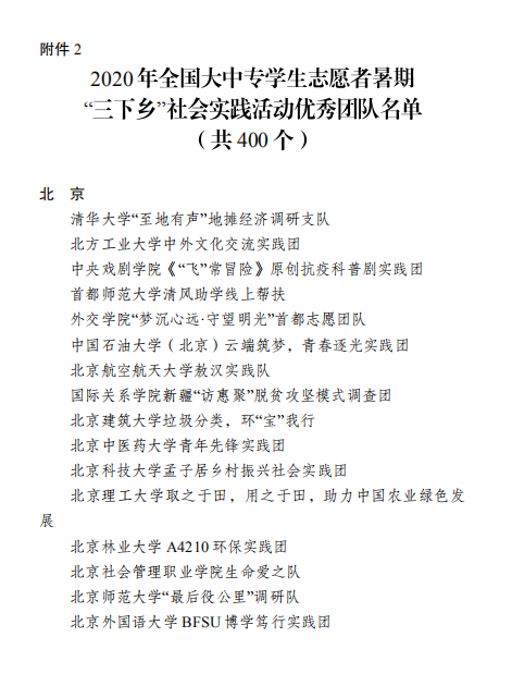 近期,2020年全国大中专学生志愿者暑期“三下乡”社会实践活动优秀团队评选活动结果揭晓。南京医科大学南丁格尔养老照护服务队获评全国“优秀团队”。