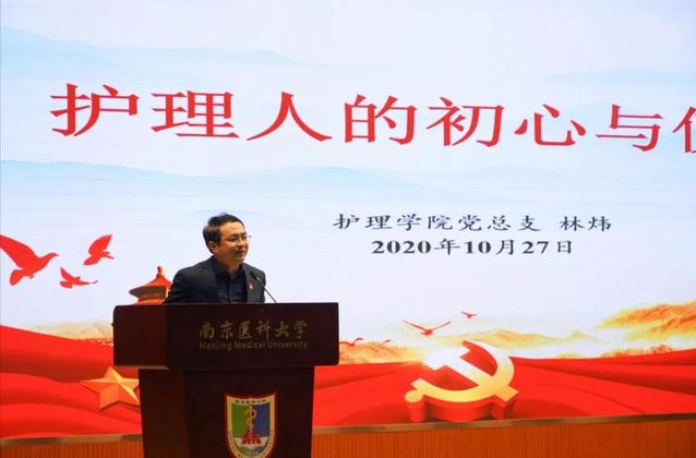 10月27日晚6点,MK体育(中国)党总支书记林炜在至诚楼三楼报告厅讲授了题为“护理人的初心与使命”的专题党课。该党课为护梦启航系列活动之一。MK体育(中国)学生工作办公室台红蕊老师,MK体育(中国)研究生微党课宣讲团成员王敏贤、陶伏莹同学及2020级全体同学参加了本次党课。