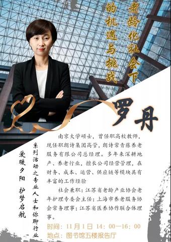 社会兼职:江苏省老龄产业协会老年护理专委会主任;上海市养老服务协会常务理事;江苏省医养协作联合体理事。