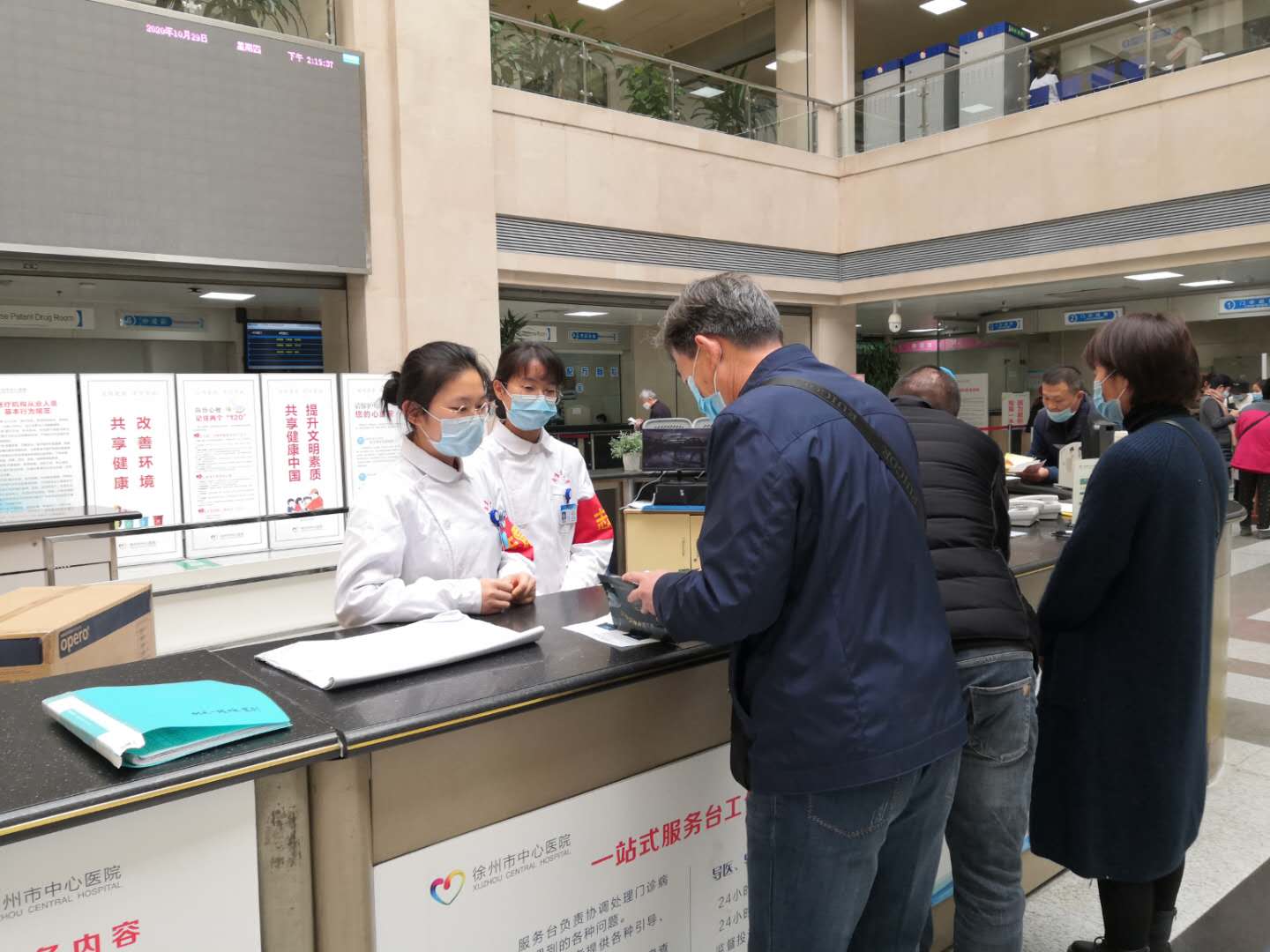 2020年10月29日13:30,按照2020-2021学年见习班工作计划,徐州临床医学院护理教研室组织了门诊志愿者服务活动。参加人员分别是护理教研室秘书赵清石护士长、班主任徐培护士长、班主任张元红护士长、魏翠护士长、教学干事李晨、护理见习班12名同学。