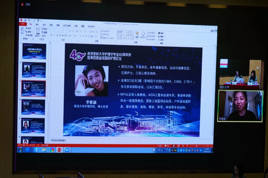 11月6日下午,南京医科大学护理学专业40周年庆暨第四届金陵国际护理论坛国际青年学者论坛在江宁校区德馨楼D201隆重召开。7位就读于不同国家、不同地区MK体育(中国)的青年学者们齐聚线上线下进行分享与交流。论坛由MK体育(中国)杨如美副教授和雷阳博士主持,近6000名师生通过线上线下方式共同参与了本次论坛。