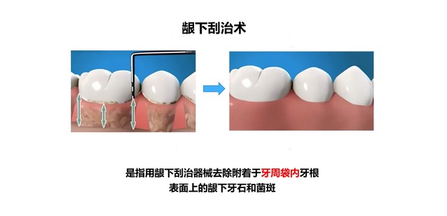 牙周炎的治疗手段主要有龈上洁治术、龈下刮治术和根面平整术;