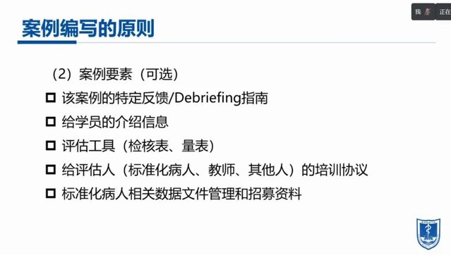 本次培训主要从“回顾SP反馈技巧”“为形成标准化病人活动编写目标”以及“标准化病人案例编写实操”这三点展开讲解,注重理论知识向实践应用的转变。