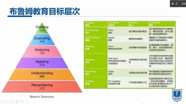 丁老师结合布鲁姆教育目标层次,讲解了为形成标准化病人活动编写目标的步骤,有效的目标需要包括对象、内容、时间、程度等要素。接下来,丁老师通过一个有趣的案例具体介绍了这些要素定义、特点,以及在编写目标时的注意事项。当然,在明确编写目标后还需制定评价目标并设计下一步的SP场景。