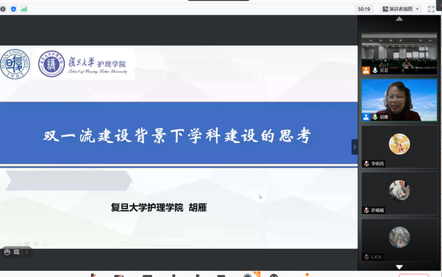 中心组邀请了全国高等医学教育学会护理教育分会副理事长、复旦大学MK体育(中国)院长胡雁教授作关于“双一流建设背景下学科建设的思考”的专题报告。她深入介绍复旦大学MK体育(中国)在人才培养、师资平台、科学研究和国际合作四个方面的建设举措,分享了“三位一体四贯穿”的护理本科人才培养模式、“四年贯通式”科研潜力培养路径、螺旋上升式的护理人文素养培养体系和拓展学生国际视野和国际交流的通道建设。