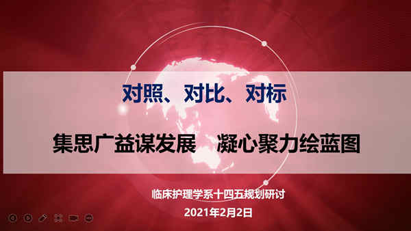 2021年2月2日晚,临床护理学系线上举行了学系“十四五”发展规划研讨会,学系全体老师线上齐聚研讨,会议由学系主任陈明霞老师主持。