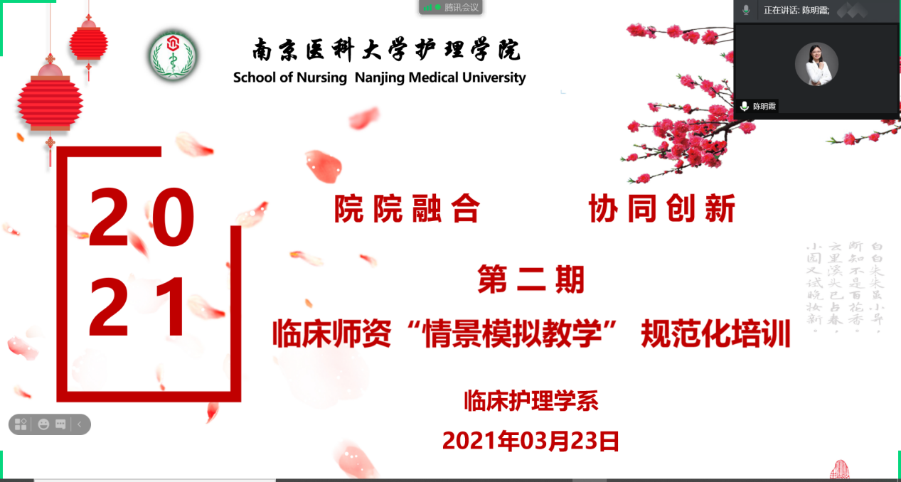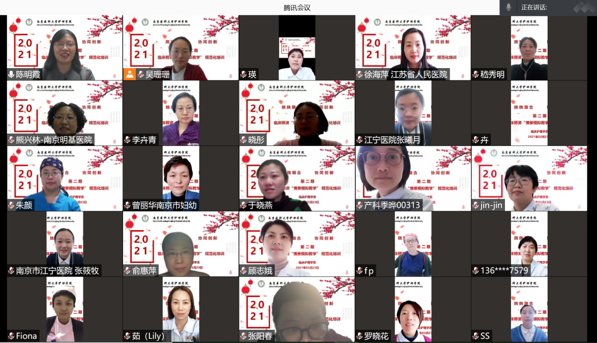 2021年3月23日下午14:00,第二期基于“院院融合”平台的临床师资情景模拟教学规范化培训项目启动仪式在线顺利举行。学院领导、老师和18家医院临床护理教研室遴选出的41位参与培训的老师出席了启动仪式。