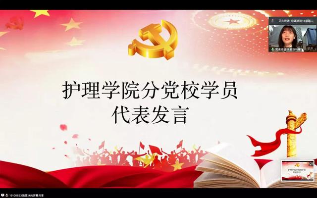 接着,依次由各学院的党校学员代表发言。来自医政学院的陈玮琢同学在发言中讲到,共产党员精神应代代相传,辈辈相承。作为入党积极分子应树立同心同向的理想信念,勇担国家与历史的责任。口腔医学院代表陈大旷同学表示,通过党课学习感受颇深,认识到作为后备力量,要在学习中不断激励自己、鞭策自己。生物医学工程与信息学院代表姚晟昊同学分享了3点心得体会:进一步提高学习理论的自觉性,自觉提高党性修养;理论联系实际,学以致用;向优秀者学习,努力向党组织靠拢。
