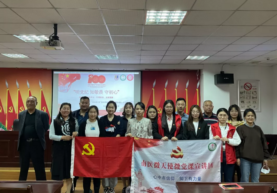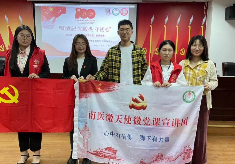为落实全面从严治党要求,进一步增强党员干部党性观念和廉洁自律意识,教育党员干部知敬畏、存戒惧、守底线,2021年4月30日,“南医微天使”微党课研究生宣讲团前往龙西社区(左邻右里泊客公寓)开展主题宣讲活动,继续“韶中国故事,递时代声音”,与社区居民共同学习党风党纪相关知识。