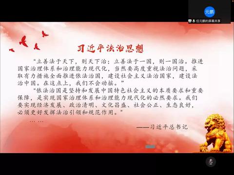 任老师以习近平法治思想为引,向同学们初步介绍何谓法治,并提出法治的概念是一种贯彻法律至上、严格依法办事的治国原则和方式。法治,乃治国理政的基本方式。