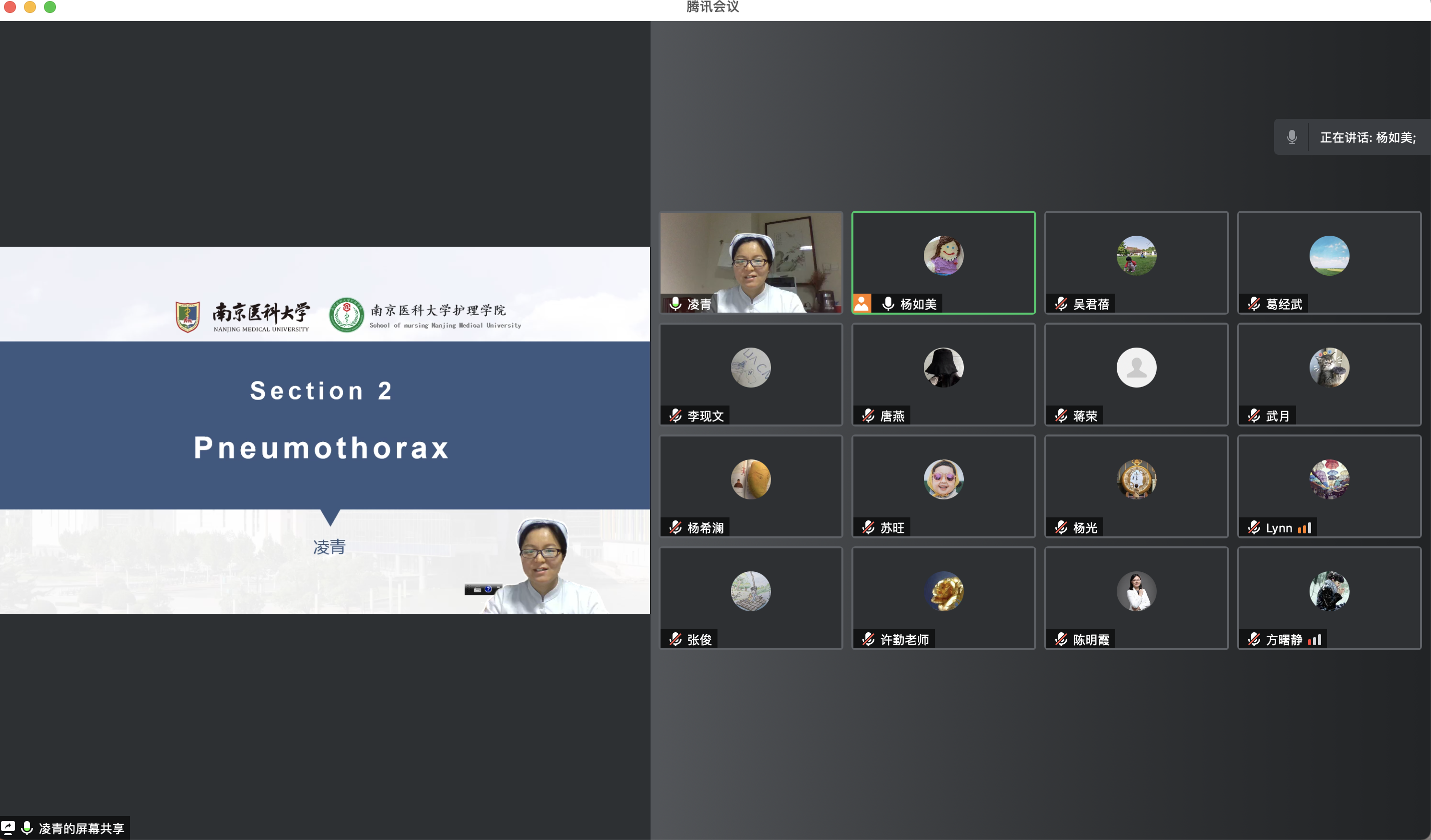 为加强护理教学创新,扩大学院师资队伍建设,2021年6月17日晚上19点,mk体育在线官网临床护理学系线上开展了留学生《外科护理学》新学期课程理论授课教师的集体备课与英文试讲活动。本次活动由留学生《外科护理学》课程负责人杨如美老师主持,MK体育(中国)许勤教授、临床护理学系陈明霞主任担任评审专家,此外参会的人员还包括李现文、杨光、蒋荣、吴君蓓等12位老师及本课程助教苏旺,拟授课对象为来华护理本科留学生。