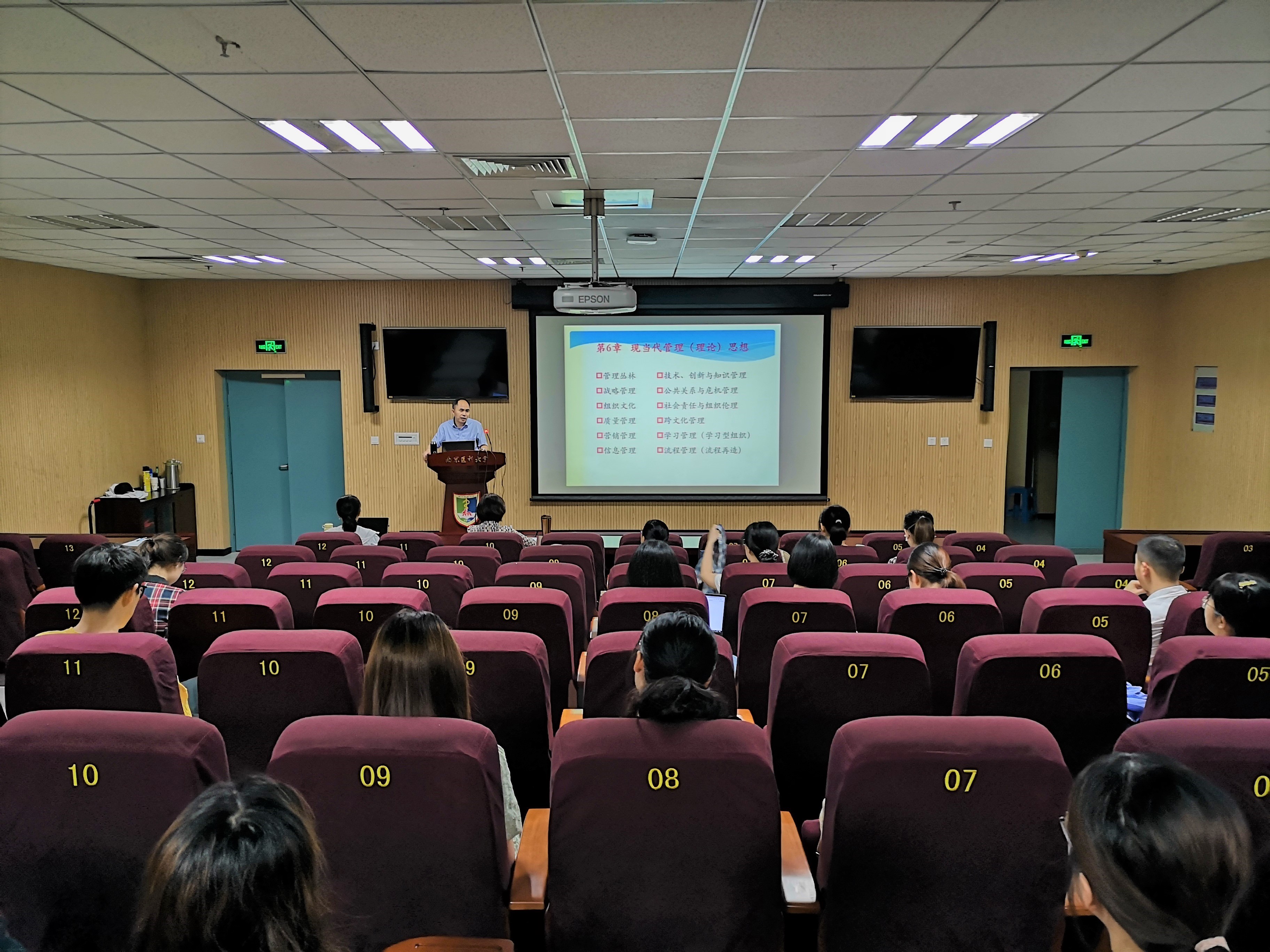 讲座中,郭本海教授引用时事热点与生活实例,将管理基本概念有效引出,将管理思想理论与科研、学问与生活有效结合,让在场的老师和同学领悟到有效运用管理思想与理论的重要意义;对于中西方管理思想的演变过程,郭教授对其进行了系统回顾与梳理,道出了各管理思想的形成背景与基本内涵;在古典管理理论的产生上,教授对个体与领导行为研究的各个经典理论逐个阐述;此外,通过与在场学生的有效互动,对决策与计划、组织、领导与激励以及控制等管理职能概念与内涵进行了深入浅出地讲解。更重要的是,在整个讲座过程中,郭教授不仅传授了专业知识,还通过引用一个个小故事和例子,给各位年轻老师和同学们渗透了管理职能概念下蕴含的做人做事的道理。