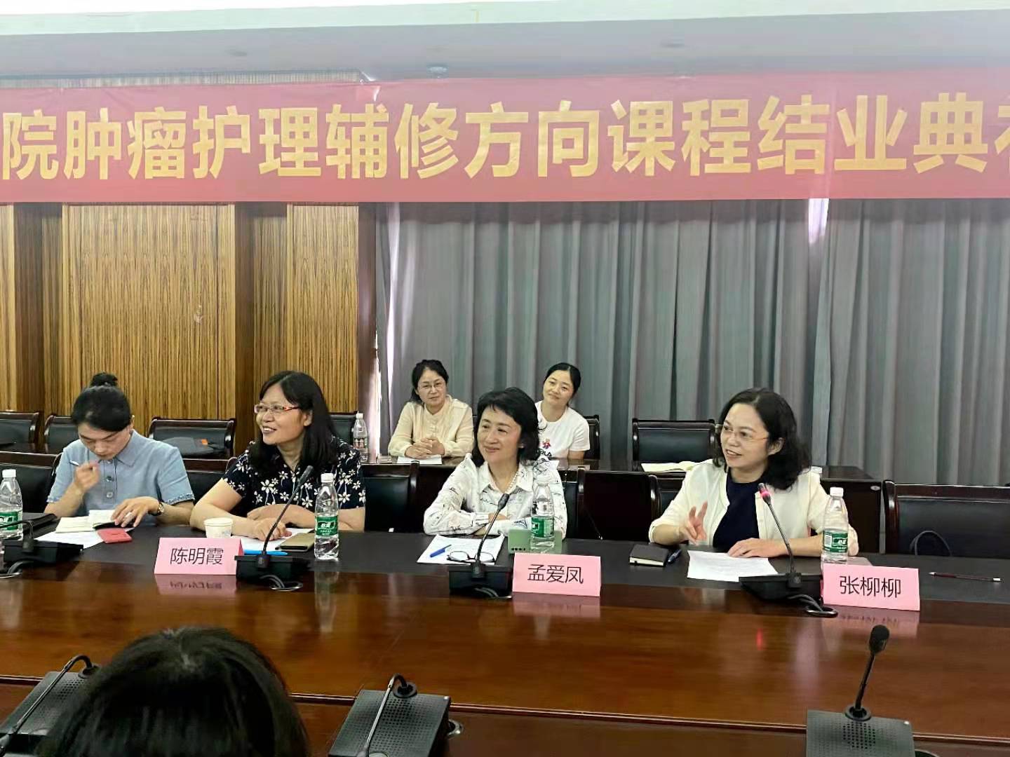 首先,肿瘤护理研究分中心主任孟爱凤致辞,她指出肿瘤护理辅修课程是一门以专业能力提升为导向,培养学生初步掌握肿瘤护理的基本理论、知识和技能的课程,为后期培养胜任肿瘤护理岗位高素质、应用型人才奠定基础。陈明霞主任对附属肿瘤医院老师们历时八个月的辛勤付出表示感谢,也祝贺学生们在辅修方向学习中收获良多,期待着学生们的精彩汇报。