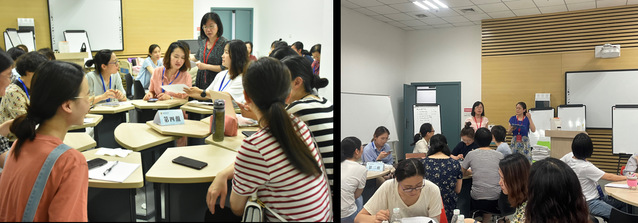 同时,组织了5个半天分组“工作坊”,带领学员们完成了多个情景案例编写与讨论,通过“模拟前引导”、“模拟案例运行与反馈”与“模拟教学评价”模拟演练,让学员们学用互动,实践为先,在实战演练中领会情景模拟教学的精髓,深入交流探讨不足及提升办法。