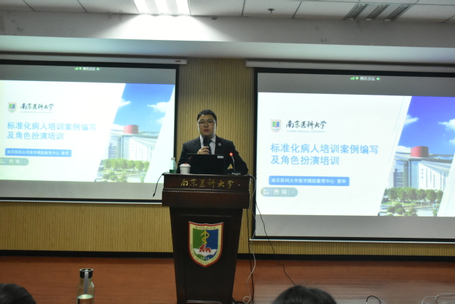 医学模拟教育中心黄华副主任以《标准化病人培训案例编写及角色扮演培训》为题,阐释了形成性案例与总结性案例的呈现形式,总结了模拟教学中存在的问题及推荐解决方法。