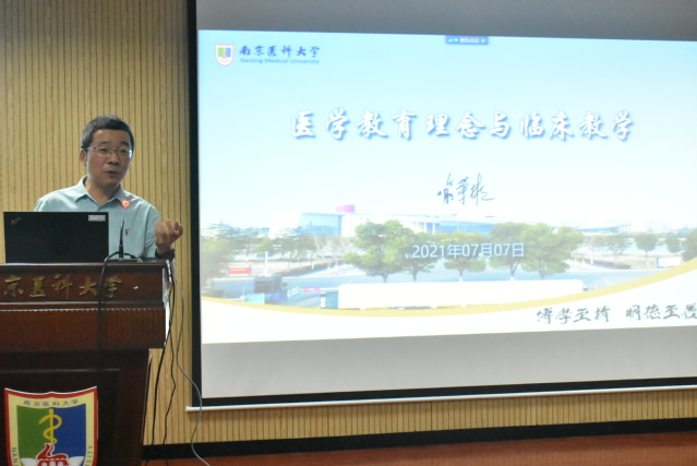 开幕式后,两位专家做主题讲座。教务处处长喻荣彬教授做“医学教育理念与临床教学”主题报告,他从医学教育的背景、理念、教学、反思等方面阐述医学的本质、时代特点和发展趋势,解析近代教育理念及教育范式的内涵,分析临床教学问题,指出目前教学需要更加明确、高效及有趣。