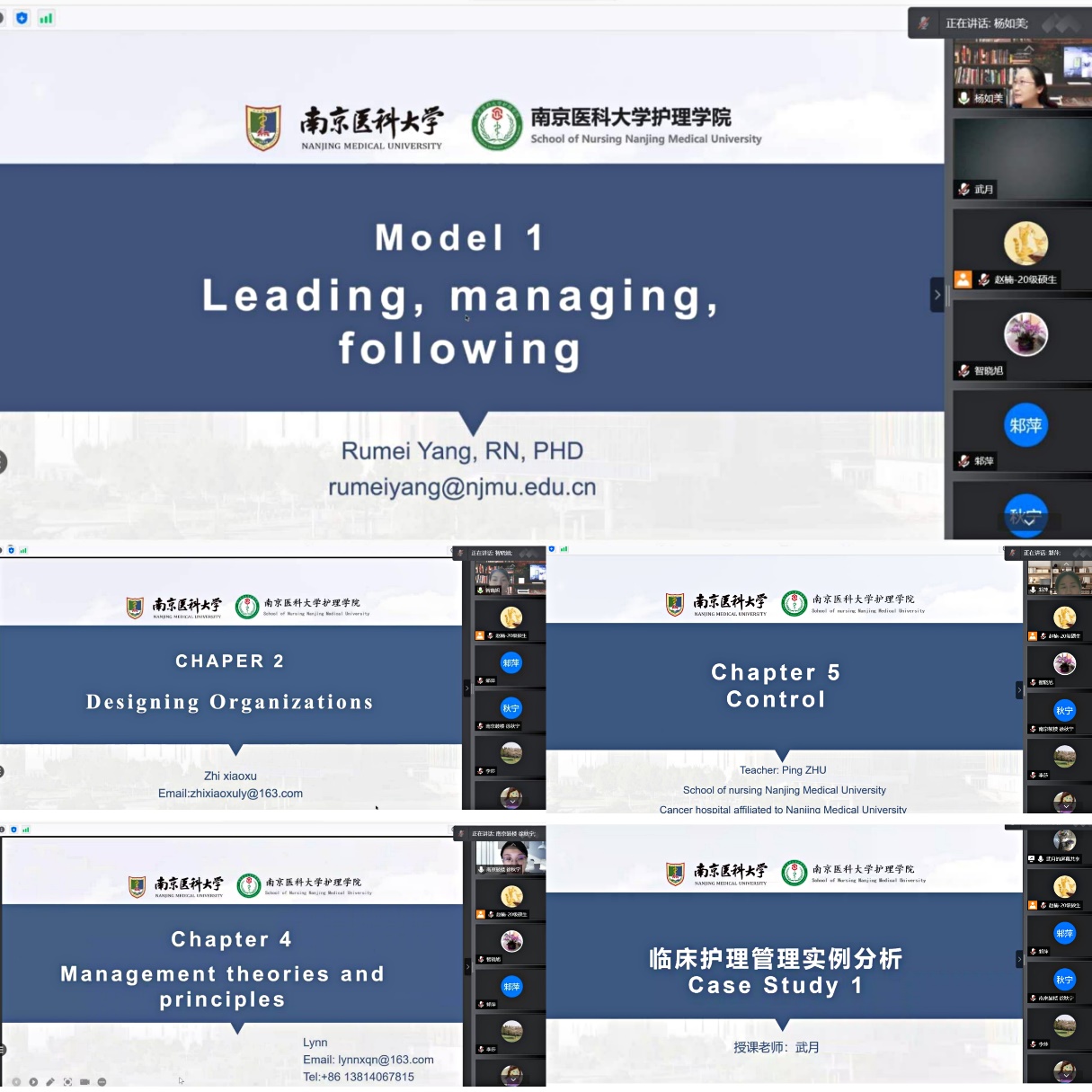 为充分发挥教师的集体智慧,提高教学质量,8月1日晚19点,护理人文与管理学系线上开展了2021年秋季学期留学生《护理管理学》课程的集体备课活动。参会人员有许勤教授、杨如美副教授、智晓旭、邾萍、徐秋宁、武月、李莎等授课教师及本课程助教赵楠,拟授课对象为来华护理本科留学生。本次活动由课程负责人杨如美老师主持。