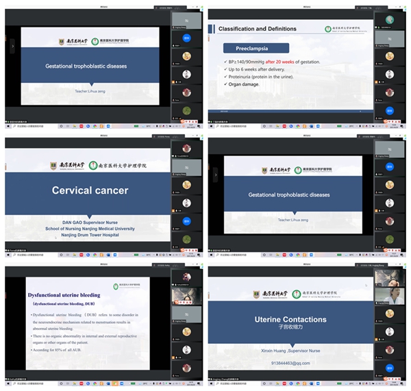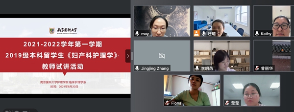 2021年8月20日下午14:00,mk体育在线官网临床护理学系线上组织开展了2021-2022学年第一学期2019级本科留学生《妇产科护理学》课程授课教师的试讲活动。活动由课程负责人汪璐老师主持,由护理人文与管理学系杨如美主任和汪璐老师担任评委,临床护理学系陈明霞主任,南京医科大学附属妇产医院张爱霞主任及来自附属妇产医院、南京市鼓楼医院和MK体育(中国)的七位试讲老师等参加了本次试讲活动。