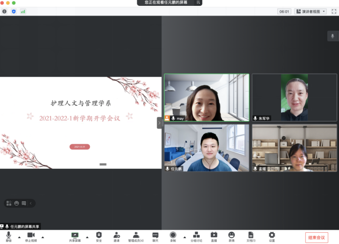 2021年8月31日上午,学系通过腾讯视频召开了新学期教学准备会议,会议由杨如美主任主持,学系全体老师参加了会议。