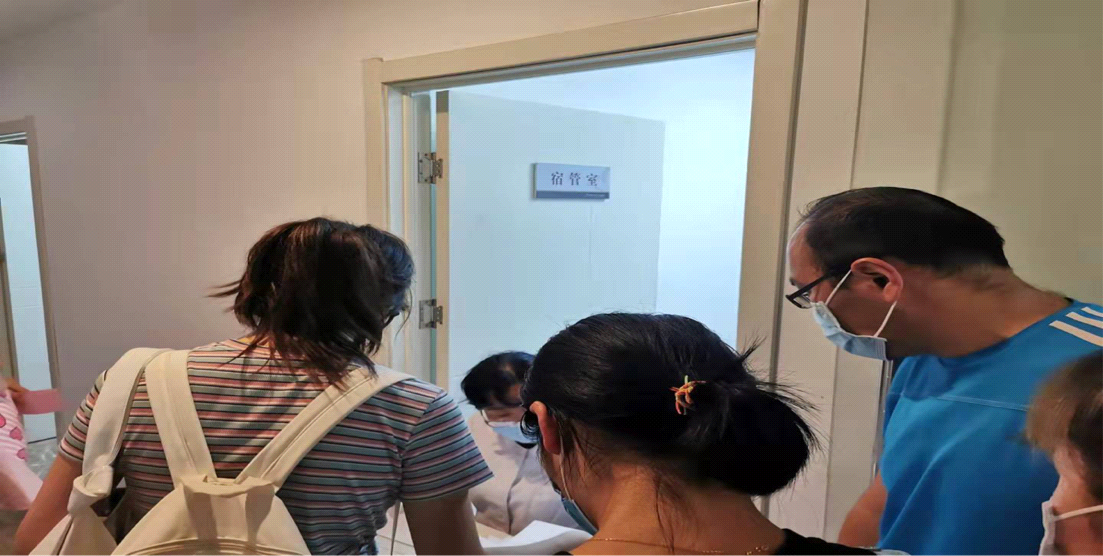 同学们抵达宿舍区便进行体温的测量、苏康码及行程码的查看、流调表的填写等登记流程,严格遵守防疫要求,确保了学生及工作人员的安全。除部分因疫情隔离的学生,临床32位及护理18位见习生已全部入驻,由宿管通知各位学生的宿舍号及位置,护理见习班团支书丁玮同学带领班级学生交付押金换取宿舍钥匙,并将车上行李搬进宿舍,一切有条不紊,井然有序。