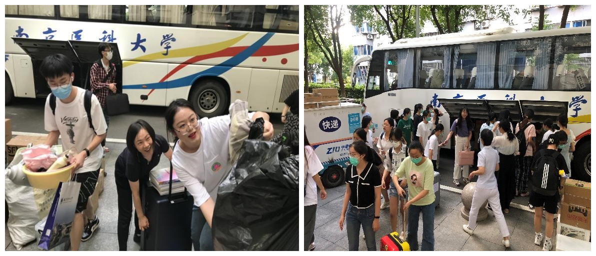 9月20日下午学生乘车前往附属无锡人民医院,最让同学们觉得欣喜的是驻点班老师们的热情和亲切。一路上,班主任钱老师就一直关心大家在路上的情况并表达了自己对同学们的关切。下车前看到老师和学长学姐们已经在寝室楼前等候,同学们感受到了满满的温暖和感动。下车之后在钱老师的带领下大家彼此与老师和学长学姐认识后便开始搬运行李,在老师们的贴心安排下搬运工作顺利且迅速的完成了。