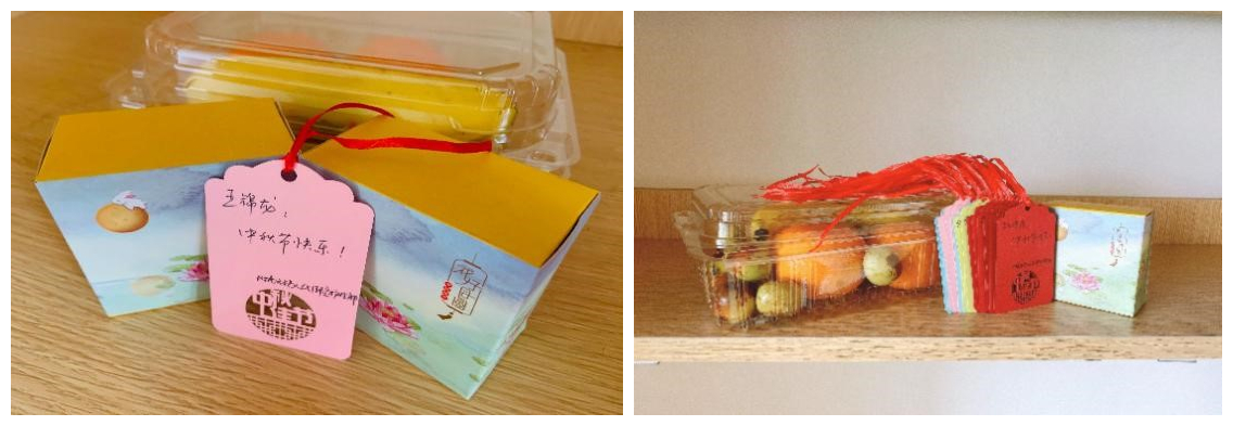 进到宿舍之后看到老师们为每个人准备的祝福语和精美的中秋礼物,大家一天的疲惫顿时烟消云散。祝福不能升值,但是幸福可以使心升温;问候不能刷卡,但是友情可以使快乐免费。来无锡的第一天同学们就找到了幸福感和归属感。