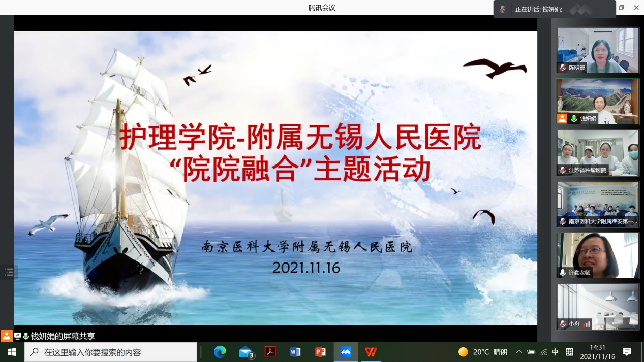 为加强学院与附院全方位合作和交流,促进护理工作的创新,进一步推进护理学科建设和发展,本年度第七期“院院融合”主题活动于11月16日成功召开。本次活动主题为:如何挖掘临床创新及转化成果、护理创新思路探索与实践。此次活动由附属无锡人民医院主办,护理部主任蔡英华主持,以线上直播形式进行交流。主讲人分别是附属无锡人民医院科研处副处长陆培华、江苏省输液治疗专科护士任晓敏。mk体育在线官网许勤院长、各临床护理教研室、MK体育(中国)的主任、教学骨干、护理骨干参加了本次活动。