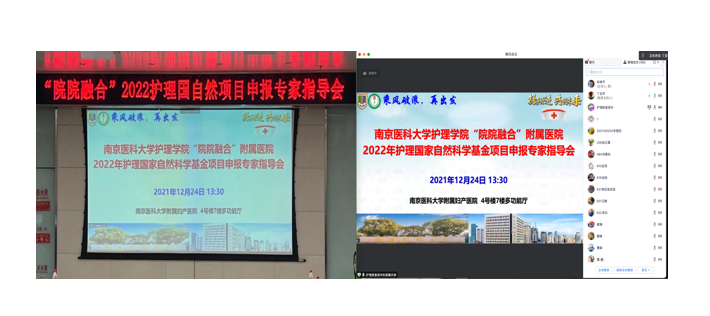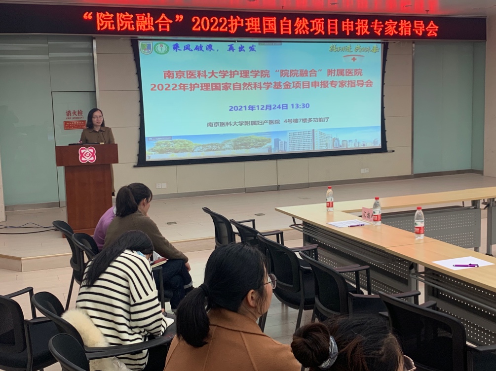 12月24日下午,为提升附属医院护理课题质量,推进国自然项目申报,我院在南京医科大学附属妇产医院(南京市妇幼保健院)成功召开了2022附属医院护理国自然项目申报专家指导会。本次活动依托“院院融合”平台,由南京医科大学护理研究中心及附属妇产医院护理部承办,丁亚萍副院长主持,以线下线上结合的形式进行交流。现场邀请了南京医科大学科技处副处长江胜强作政策解读,医政学院姚俊教授、MK体育(中国)许勤教授、孙国珍教授、公共卫生学院尤华副教授、附属妇产医院季晨博副教授作为点评专家,附属妇产医院丁丰美纪委书记、医学研究中心季晨博主任、护理部朱珠主任、临床护理教研室张爱霞主任、护理研究中心王洁主任、朱姝芹副主任、以及各附属医院拟申报项目的负责人现场参会,附属医院相关老师及研究生等线上参会,线上线下近200余人参加了本次活动。