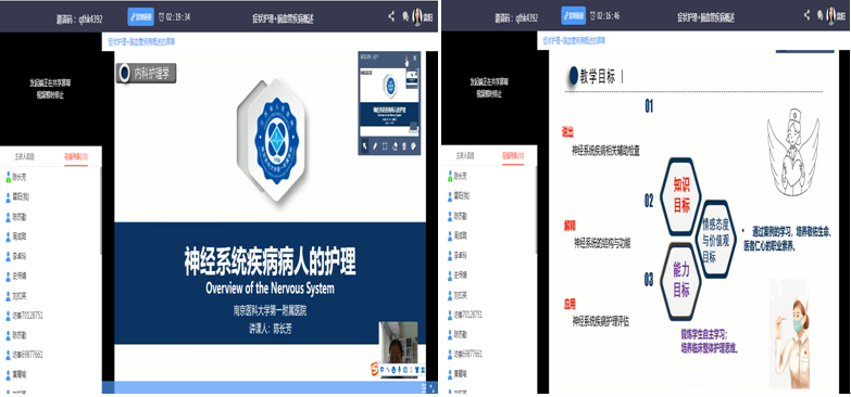 目前疫情防控形势依然十分严峻,护理学专业的各位老师精心备课,一手抗疫情,一手抓教学,用实际行动诠释护理学专业课程思政教学规定,将“家国情怀、团结协作、职业素养、人文素养”等融入临床实践和案例教学中,激发同学们的专业认同感和自豪感,塑造正确的世界观、人生观和价值观。