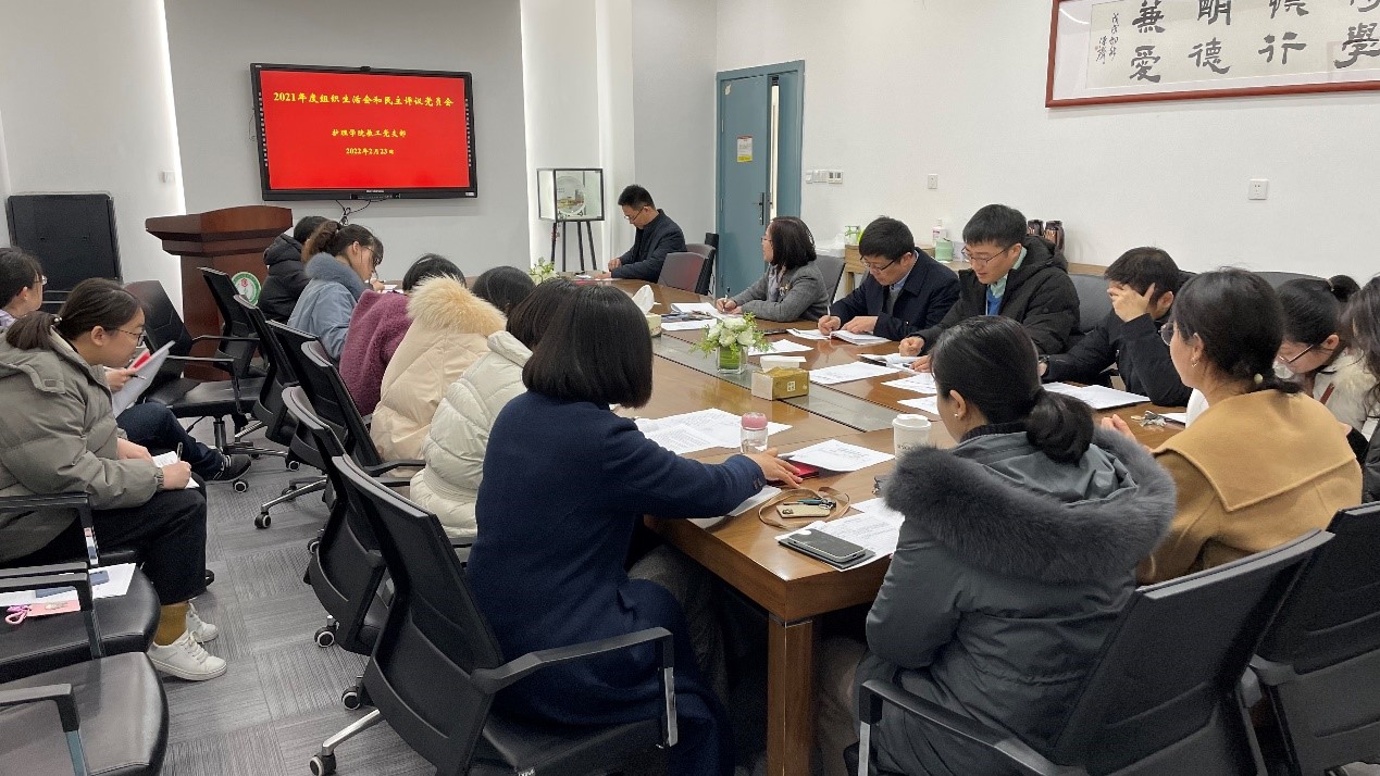为深入学习贯彻习近平新时代中国特色社会主义思想,严格党员组织生活管理,教工党支部于2月23在学海楼C504会议室组织开展2021年度组织生活会和民主评议党员会,支部全体党员参加了会议。