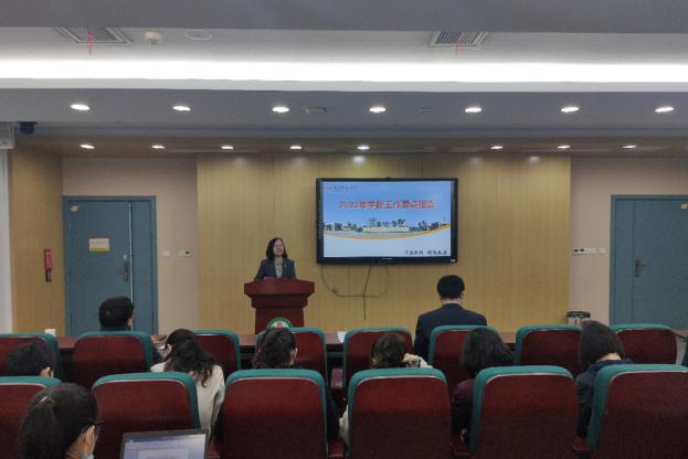 最后,陈龙书记进行大会总结,他强调,2022年是学院的内涵建设关键年,他希望全体教职工能够做到转变观念,协同发展;主动担当,实现高质发展;加强学习,提高治理水平;加强文化建设,增强学院凝聚力。在当前疫情形势依然严峻的情形下,陈书记还要求全院教职工服从大局,管好自己的人,看好自家的门,坚持打卡、执行好请销假等制度。