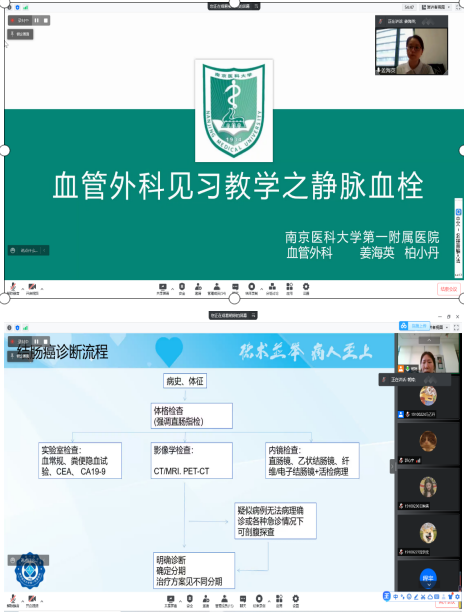 《内科护理学》线上见习课实施“与病人连线问诊、亲身示范实践教学”创新举措。在内分泌科秦月华老师的课上,同学们先连线患者问诊,再进行小组讨论、汇报,教师点评后讲解、演示常见专科操作及亲身示范血糖测量,闭环式保障教学效果。秦老师要求同学问诊时要注意贴合重点、挖掘细节,强调过硬的临床操作技能和良好的沟通交流技巧对于临床专业护士的重要性。