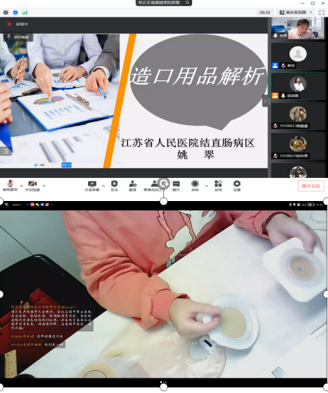 《外科护理学》的线上见习课,老师们综合运用案例分析、情境模拟及视频分享等教学手段,强化教学效果。如讲解高品质胃肠减压护理操作视频,结合更换肠造口袋典型案例在线直播演示造口护理流程,通过在线提问及充分互动检验了学生的学习效果,活跃了课堂氛围,强化了对操作流程的理解,线上见习效果显著。