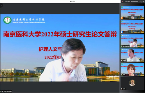 2022527日上午8:30,护理人文与管理学系采用线上线下相结合的方式在学海楼C504举办了2022年硕士研究生论文答辩会。东南大学附属中大医院原护理部李国宏主任担任答辩主席,江苏省人民医院党办主任顾则娟主任、南京医科大学公共卫生学院社会医学与健康教育学系主任尤华副教授、mk体育在线官网护理人文与管理学系主任杨如美副教授担任答辩委员、mk体育在线官网嵇艳副教授担任督导,李莎老师任答辩秘书。参会人员有以医政学院副院长姚俊教授为代表的各研究生导师、6位答辩人以及学系全体研究生。
