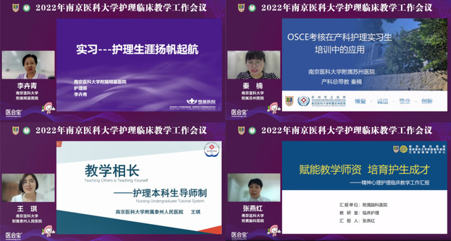 MK体育(中国)丁亚萍副院长主持临床带教和管理经验分享。附属明基医院护理部李卉青副主任分享了《实习——护理生涯扬帆起航》,附属苏州医院护理部秦楠老师分享了《OSCE考核在产科实习生培训中的应用》,附属泰州人民医院王琪老师分享了《教学相长——护理本科生导师制》,附属脑科医院护理部张燕红主任分享了《赋能教学师资 培育护生成才——精神心理护理临床教学工作汇报》。四位老师从不同角度展示了各教学基地在实习生带教中的经验与管理特色,内容丰富、引起共鸣、发人深思。