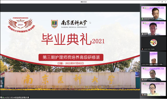 7月2日,我院举办2021年南京医科大学附属医院/教学医院护理师资培养高级研修班(第三期)结业典礼,全体院领导、教师代表,研修班全体学员参加了结业典礼,典礼仪式由研修班班长、南京医科大学附属肿瘤医院邢益辉主持。