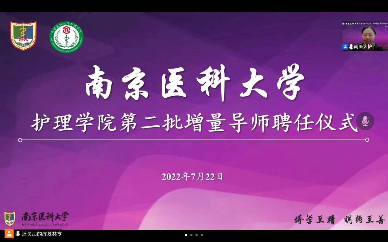 7月22日,mk体育在线官网第二批增量导师聘任仪式在线上顺利举行,南京医科大学研究生院吴文明副院长、研究生院培养办陈丞主任,MK体育(中国)陈龙书记、许勤院长、苏益民副书记、丁亚萍副院长,各学系主任,全体增量导师和研究生代表参与了此次聘任仪式。仪式由丁亚萍副院长主持。