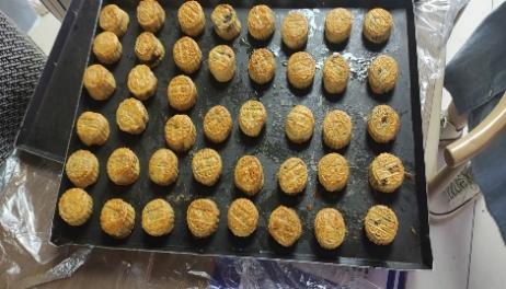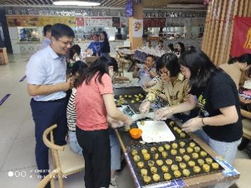 活动在面包房专业人员指导下顺利开展,师生们全身心投入到广式传统月饼制作上。馅料加工、饼皮制作、糖浆熬制、计量分摘、包馅成型、置盘烘烤,经过一个多小时耐心专注的流水制作,一盘盘色泽诱人、飘香四溢的“护理定制”月饼新鲜出炉。品尝劳动的成果感受劳动的光荣,现场学生们将制作的月饼转送到后勤和保卫人员手上,和他们一起分享节日的喜悦。